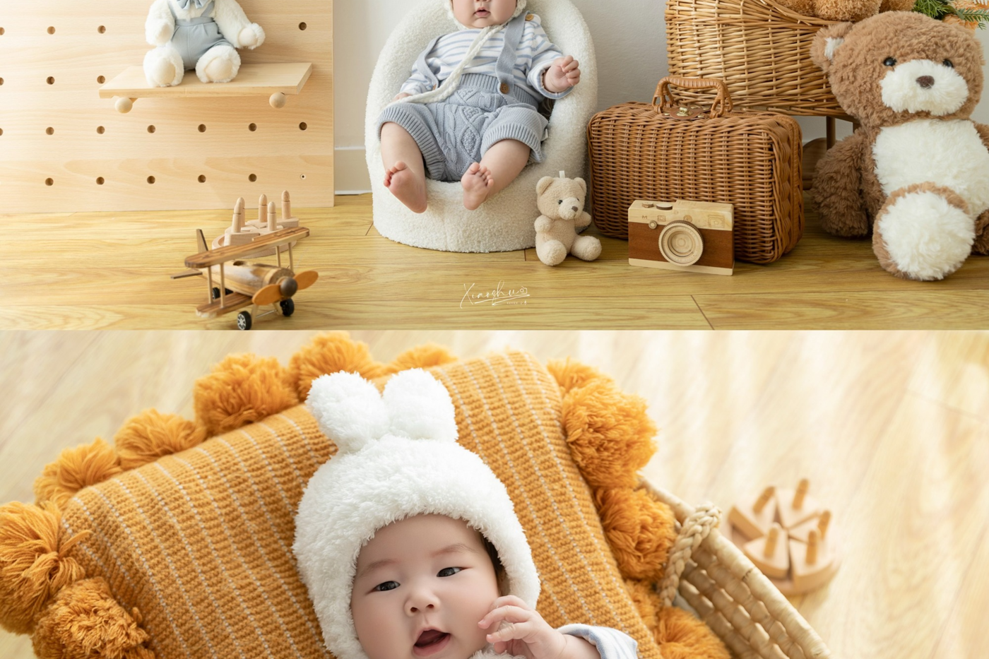 谁懂啊!把宝宝拍成星星人也太可爱了吧🥹 软fufu的小熊帽+暖橙色调, 连笑容都在发光✨ 每一张都像在说: “我是来给你送星星的小宝贝呀~”[更多…]